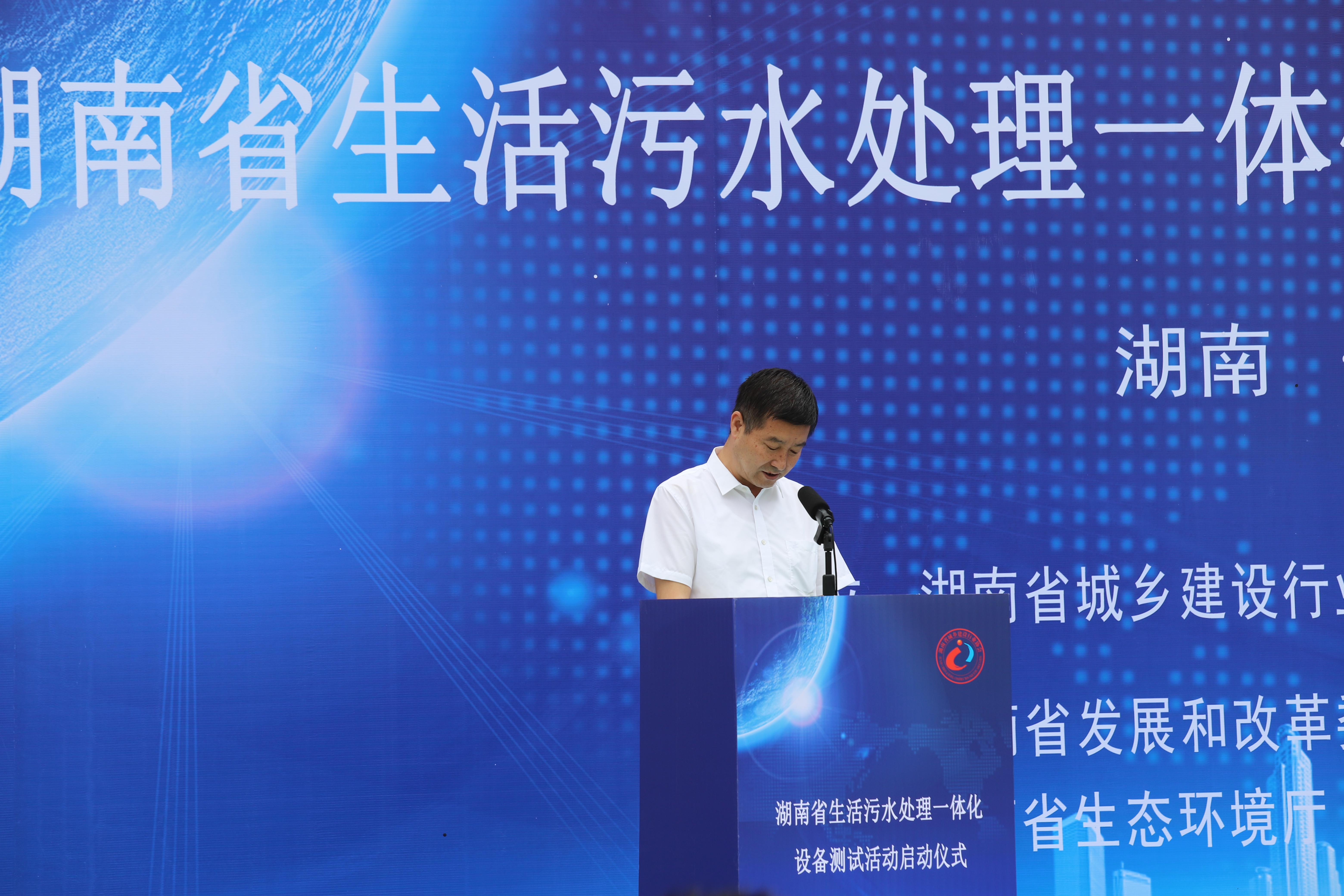 9月24日上午,湖南省生活污水處理一體化設(shè)備測試活動啟動儀式在長沙市岳麓污水處理廠隆重舉行。省住房城鄉(xiāng)建設(shè)廳黨組成員、副廳長易小林、村鎮(zhèn)處江韜處長、王暢副處長、城建處馮磊主任,省發(fā)改委資源節(jié)約和環(huán)境保護(hù)處吳毅鋒副處長、省財政廳經(jīng)濟(jì)建設(shè)處黃擁政副處長、省生態(tài)環(huán)境廳水生態(tài)環(huán)境處劉洪義調(diào)研員、長沙市住建局黨組成員馮先強(qiáng)同志,長沙市排水事務(wù)中心污水處理事務(wù)部梁軍部長出席會議。中國城鎮(zhèn)供水排水協(xié)會李衛(wèi)華教授蒞臨指導(dǎo)。全省排水行業(yè)40多位行業(yè)資深專家、全省各市縣住建局的180多位領(lǐng)導(dǎo)以及湖南省城鄉(xiāng)環(huán)境建設(shè)有限公司、湖南省交通水利建設(shè)集團(tuán)有限公司、湖南發(fā)展集團(tuán)股份有限公司、湖南首創(chuàng)投資有限責(zé)任公司、北控水務(wù)有限公司中部大區(qū)、湖南省建筑設(shè)計院有限公司、長沙市聯(lián)泰水質(zhì)凈化有限公司等水務(wù)行業(yè)的企業(yè)代表受邀參加活動。還有積極支持并參與測試活動的20家設(shè)備企業(yè)相關(guān)負(fù)責(zé)同志參與本次活動。聯(lián)泰集團(tuán)公司蔡怒潮副總經(jīng)理、長沙聯(lián)泰水務(wù)公司李全明總經(jīng)理出席活動儀式。