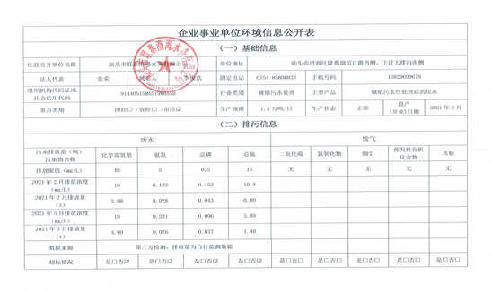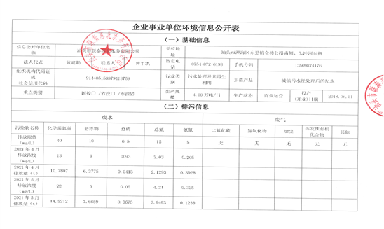信息公開單位名稱: 汕頭市聯泰澄海水務有限公司