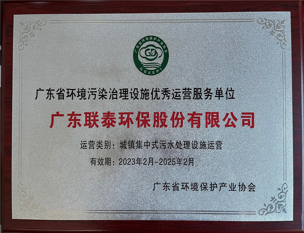 廣東省環(huán)境污染治理設(shè)施優(yōu)秀運(yùn)營(yíng)服務(wù)單位(有效期2023年2月-2025年2月)