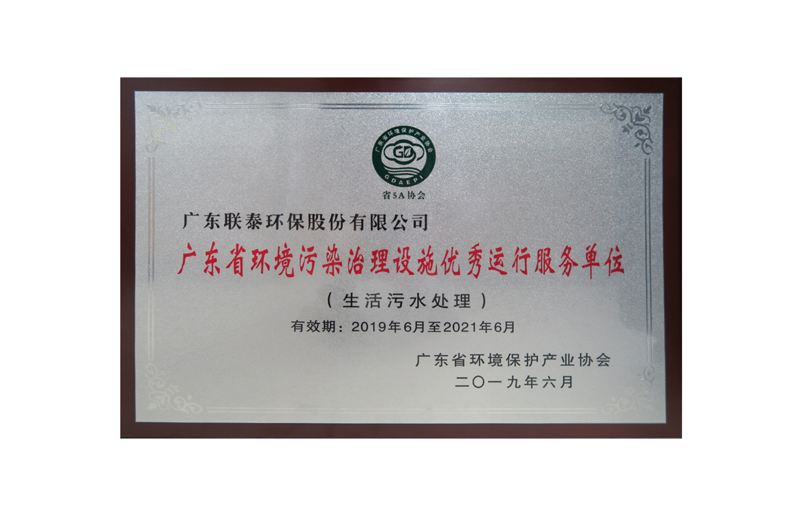 廣東省環境污染治理設施優秀運行服務單位